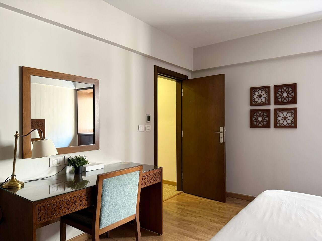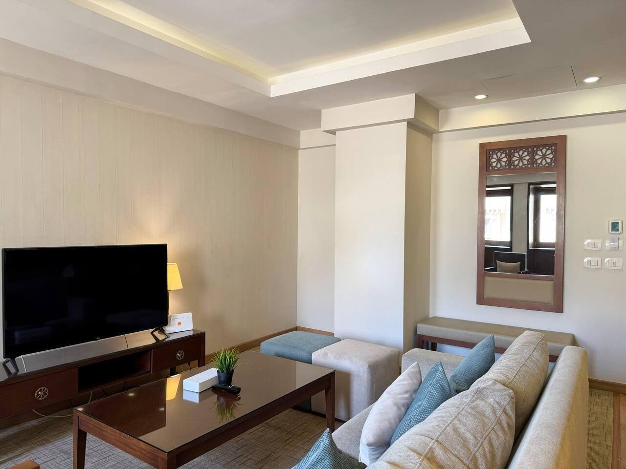 This unique and stylish space is located on the island of Zamalek, one of Cairo’s hot spots. Newly Renovated at the heart of Cairo. Fully equipped and furnished Studio space with a Private Bathroom. . 25 KM from Cairo’s International Airport/ 30-45 Mins. . 32 KM from Sphinx International Airport/ 45 Mins. . 21 KM from The Great Pyramids Of Giza/ 30-40 Mins. . 5 KM from The Downtown Cairo/ 10 Mins. . 5 KM from The Egyptian Museum/ 10 Mins . 5 KM from The Cairo Tower/ 10 Mins Step into a well-designed studio that balances comfort and functionality. With its cozy king bed and fully equipped kitchenette, this space is perfect for preparing light meals or enjoying takeout from nearby cafes. A smart TV and reliable Wi-Fi keep guests connected and entertained, creating an inviting atmosphere ideal for relaxation after a well spent day in Cairo. -Fast Wifi – Key card access -Professionally Cleaned -Fresh Towels -24/7 Support -Complimentary welcome kit -Weekly housekeeping -Comfortable Bedding -Shower amenities At Iconia, you’ll have full access to everything inside the property! Kick back and relax, knowing everything you need is right here. Beyond your apartment, dive into more fun: enjoy a refreshing swim in the pool, sip your favorite brew at 30 North Café, stock up at Deli Mart, or explore the library. You can also grab a bite at Butcher’s Burger or indulge in some retail therapy at the boutique store. Everything’s within reach, ready for you to enjoy! Need anything during your stay? We’re just a call away! You can reach our friendly front desk at Iconia, or dial our reservations number for assistance. Prefer texting? Shoot us an Airbnb message. We’re here to help you have the best experience possible, so don’t hesitate to reach out! Zamalek is a secure island located in the heart of Cairo surrounded by the River Nile. A walking distance to everything you will need.