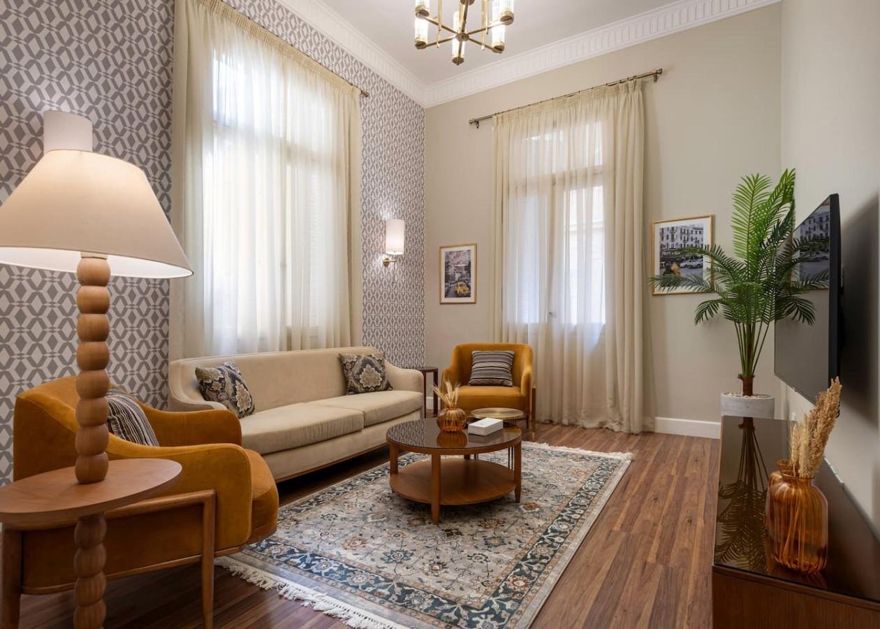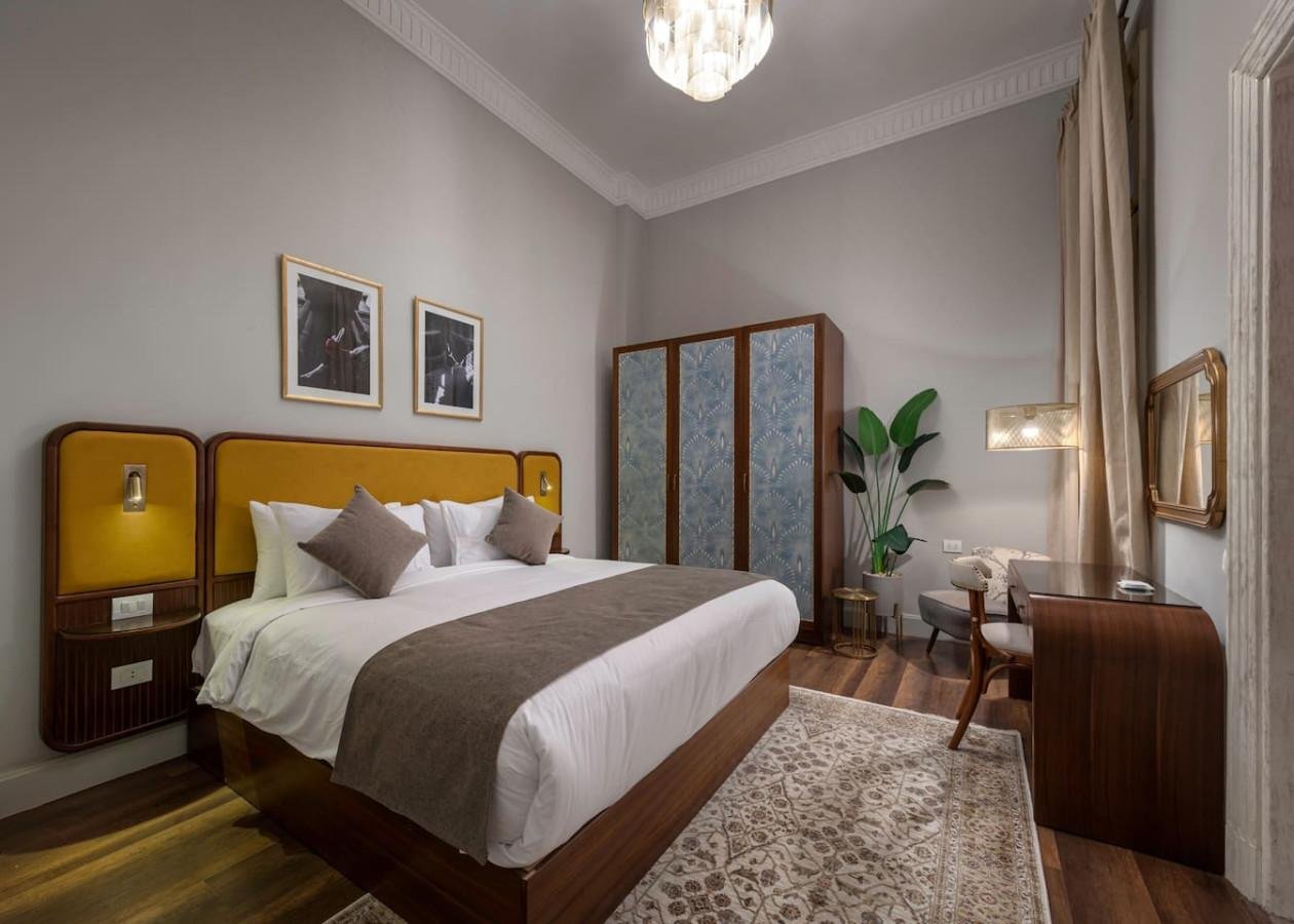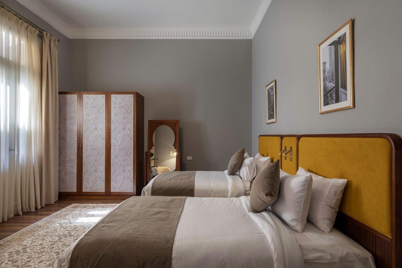 This 2BR apartment with a back view offers a peaceful hideaway in the heart of Downtown Cairo. The space’s vintage-inspired décor gives it a distinct character, blending timeless style with contemporary living. Perfect for those who appreciate subtle elegance, it’s a cozy and charming spot to enjoy the city’s dynamic surroundings. Welcome to this charming 2-bedroom apartment, where comfort meets style. The master bedroom boasts a cozy king bed, while the second bedroom is fitted with twin beds, catering to various sleeping arrangements. The inviting living room features a smart TV, perfect for unwinding after a day in the city. With a dedicated dining area and a fully equipped kitchen, you’ll feel right at home. Two modern bathrooms add to the convenience, making this apartment a perfect choice for those looking to enjoy Downtown Cairo’s vibrant lifestyle. Nearby Attractions: . 20 KM from The Great Pyramids Of Giza/ 35 Mins. . 1.7 KM from The Egyptian Museum/ 5 Mins. . 18 KM from the Grand Egyptian Museum / 32 Mins. . 2.7 KM from The Cairo Tower/ 10 Mins. . 21 KM from the Grand Egyptian Museum (34 Mins) Airports: . 20 KM from Cairo’s International Airport/ 30-45 Mins. . 43 KM from Sphinx International Airport/ 55 Mins. At Adly, you’ll have access to everything within the property, making it easy to relax and enjoy your stay. Need anything during your stay? We’re just a call away! You can reach our friendly front desk, or dial our reservations number for assistance. Prefer texting? Shoot us an Airbnb message. We’re here to help you have the best experience possible, so don’t hesitate to reach out! Downtown Cairo is the perfect blend of vintage and contemporary, where ancient culture and architecture intertwine with the modern daily life. Our living space in this vibrant neighborhood is a journey through time, where the soul of the city whispers its secret to those who listen We have your back 24/7 for you to have a memorable and successful stay 🙂