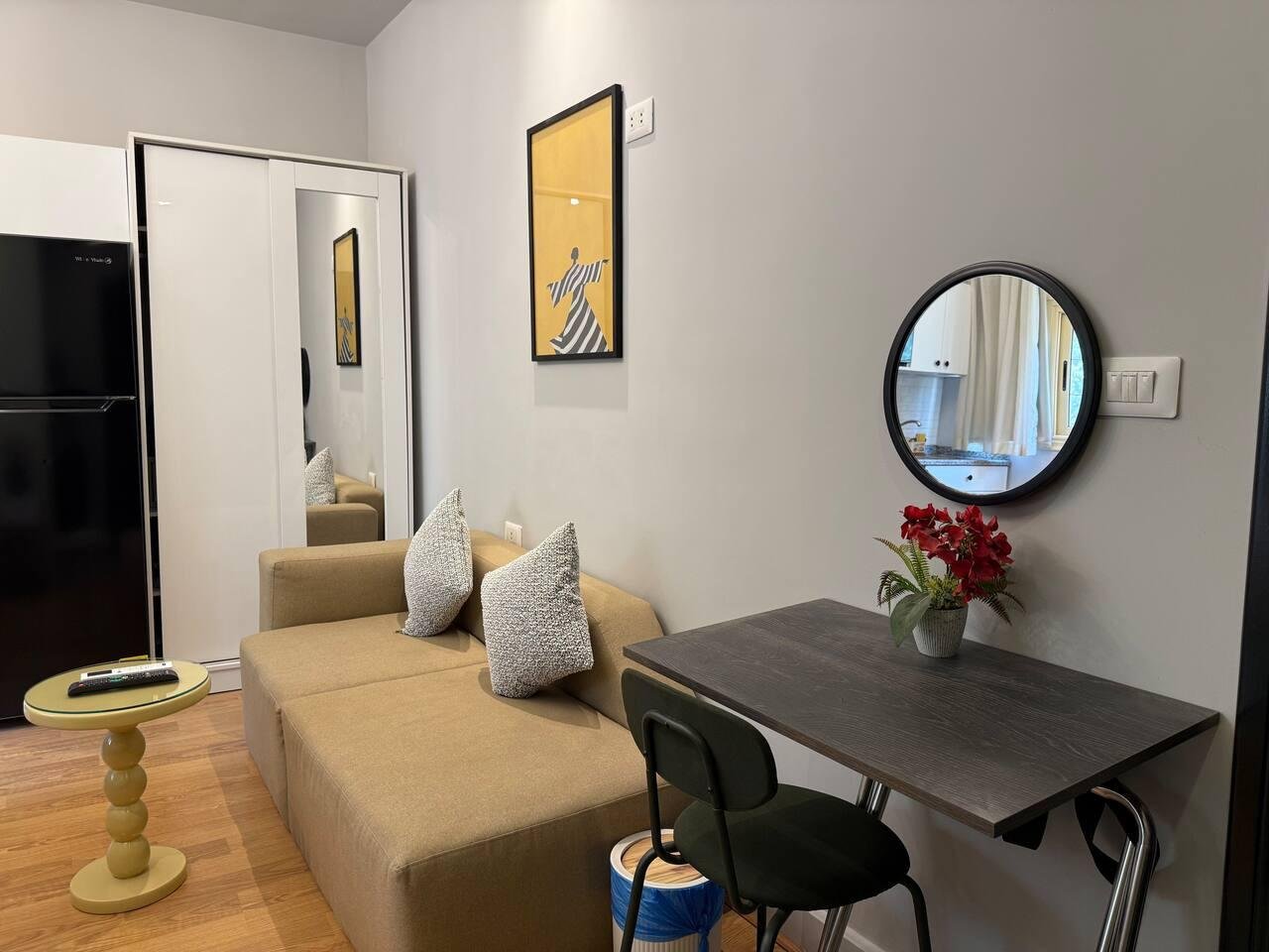 Bright studio with a queen bed, kitchen, desk, and a curated gallery feel. Steps from the shared terrace and social lounge. Great for short and long stays This studio has everything you need — a queen bed, a kitchen, and a workspace. You’ll also have access to a gym, shared lounge, and outdoor terrace. Located in Maadi, one of Cairo’s greenest and most walkable neighborhoods. At Canal House, you’ll have access to everything within the property, making it easy to relax and enjoy your stay. Step beyond your space and unwind in the shared terrace area, which is perfect for soaking up the Maadi atmosphere. Whether you’re enjoying a coffee in the fresh air, socializing with other guests, or just taking a moment to relax outdoors, the terrace offers a peaceful retreat. With every essential amenity in place, Canal House ensures a seamless and enjoyable experience during your time in Maadi. Need anything during your stay? We’re just a call away! You can reach our friendly front desk or dial our reservations number for assistance. Prefer texting? Please shoot us an Airbnb message. We’re here to help you have the best experience possible, so don’t hesitate to reach out! Located in the Maadi neighborhood, known for its eclectic community, local Egyptian heritage families, young artists, art enthusiasts, and a hub of expats, the Maadi neighborhood is a layered, eclectic experience. Its heritage is personified through unique antiquities and contemporary art pieces curated in a harmonious design that brings them together. Nearby Attractions: . 19 KM from The Great Pyramids Of Giza/ 32 Mins. . 14 KM from Downtown Cairo/ 28 Mins. . 13 KM from The Egyptian Museum/ 27 Mins. . 22 KM from the Grand Egyptian Museum / 27 Mins. . 14 KM from The Cairo Tower/ 30 Mins. Airports: . 30 KM from Cairo’s International Airport/ 43 Mins. . 54 KM from Sphinx International Airport/ 53 Mins. We have your back 24/7 for you to have a memorable and successful stay 🙂