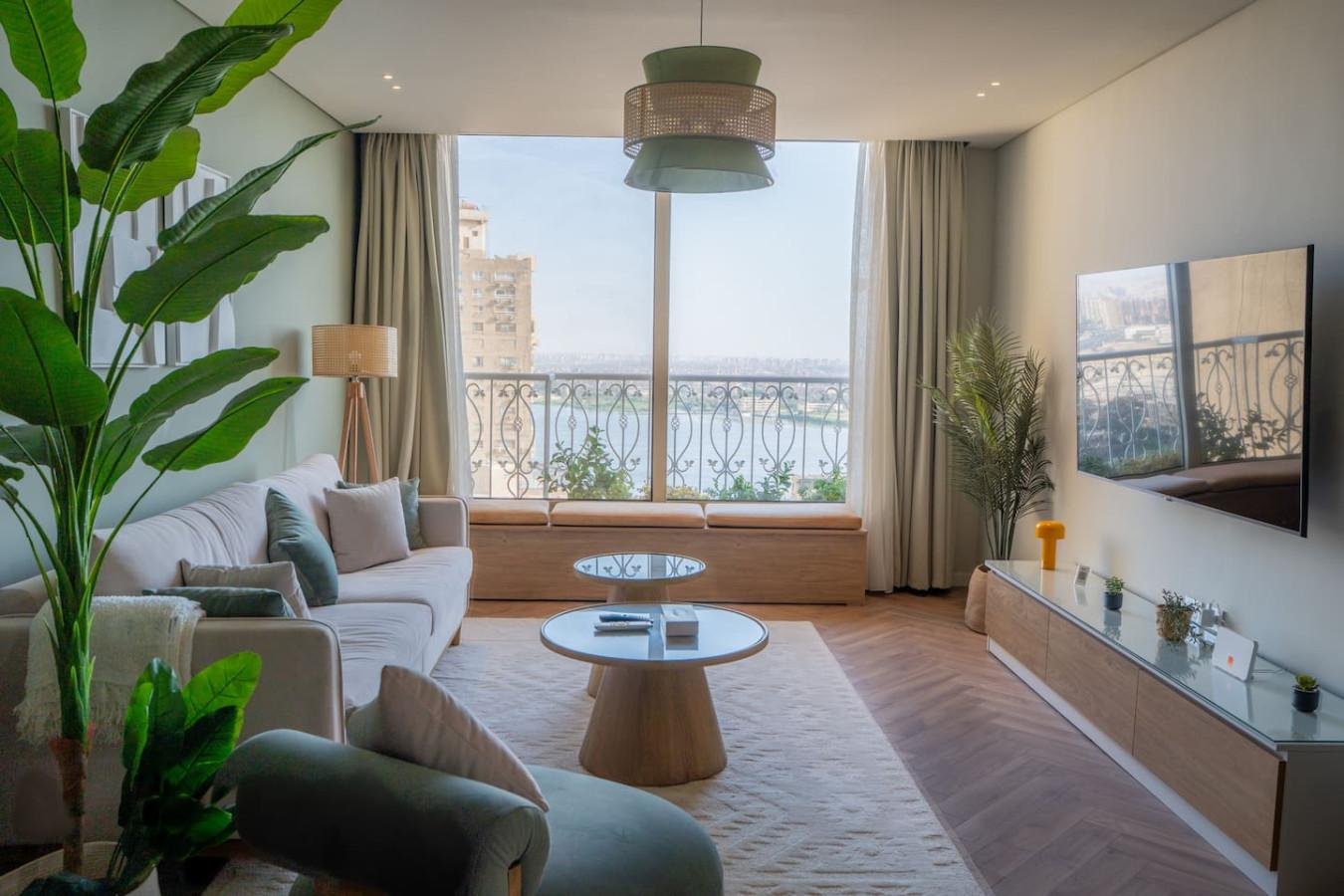 Bright 2-bedroom apartment with nile view. You’ll have a full kitchen, living area, and workspace. Great for short and long stays. This apartment has everything you need. 2 bedrooms, a living space to relax in, a kitchen to cook your own meals, and a desk if you’re working while traveling. You’ll be in Maadi, one of Cairo’s greenest and most livable neighborhoods, with the Nile just outside your window. At this apartment, you’ll have access to everything within the property, making it easy to relax and enjoy your stay. Need anything during your stay? We’re just a call away! You can dial our reservations number for assistance. Prefer texting? Shoot us an Airbnb message. We’re here to help you have the best experience possible, so don’t hesitate to reach out! Located in the Maadi neighborhood, known for its eclectic community, local Egyptian heritage families, young artists, art enthusiasts, and a hub of expats, the Maadi neighborhood is a layered, eclectic experience. Its heritage is personified through unique antiquities and contemporary art pieces curated in a harmonious design that brings them together. Nearby Attractions: . 19 KM from The Great Pyramids Of Giza/ 32 Mins. . 14 KM from Downtown Cairo/ 28 Mins. . 13 KM from The Egyptian Museum/ 27 Mins. . 22 KM from the Grand Egyptian Museum / 27 Mins. . 14 KM from The Cairo Tower/ 30 Mins. Airports: . 30 KM from Cairo’s International Airport/ 43 Mins. . 54 KM from Sphinx International Airport/ 53 Mins. We have your back 24/7 for you to have a memorable and successful stay 🙂